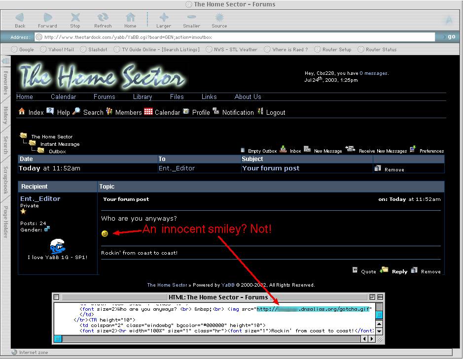 If you know anything about these DoS attacks, please report them to either Space Ghost or Yahoo Abuse. Yahoo has expressed an interest in prosecuting the offenders.
